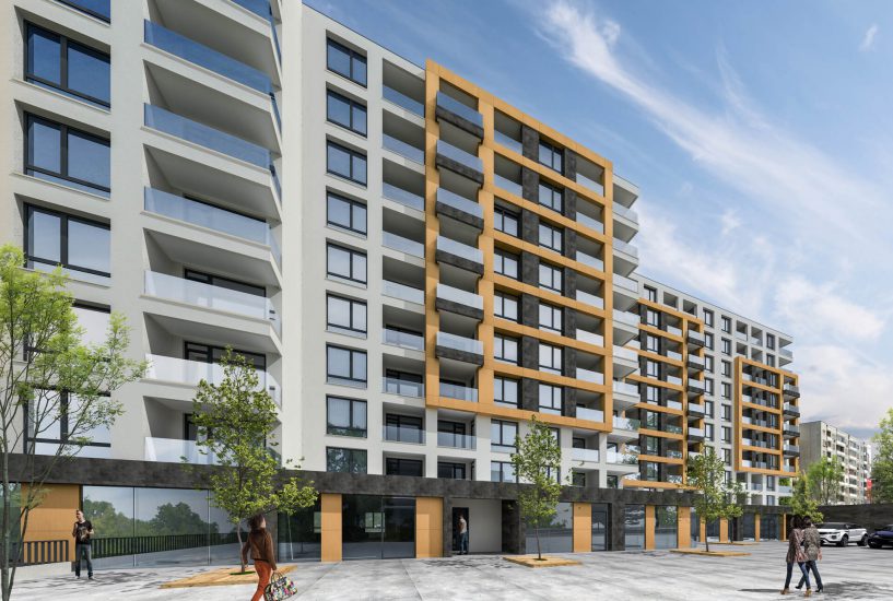 Сградата е на десет етажа и предлага богато разнообразие от двустайни, тристайни и четиристайни апартаменти, а в партерният етаж има търговски площи.