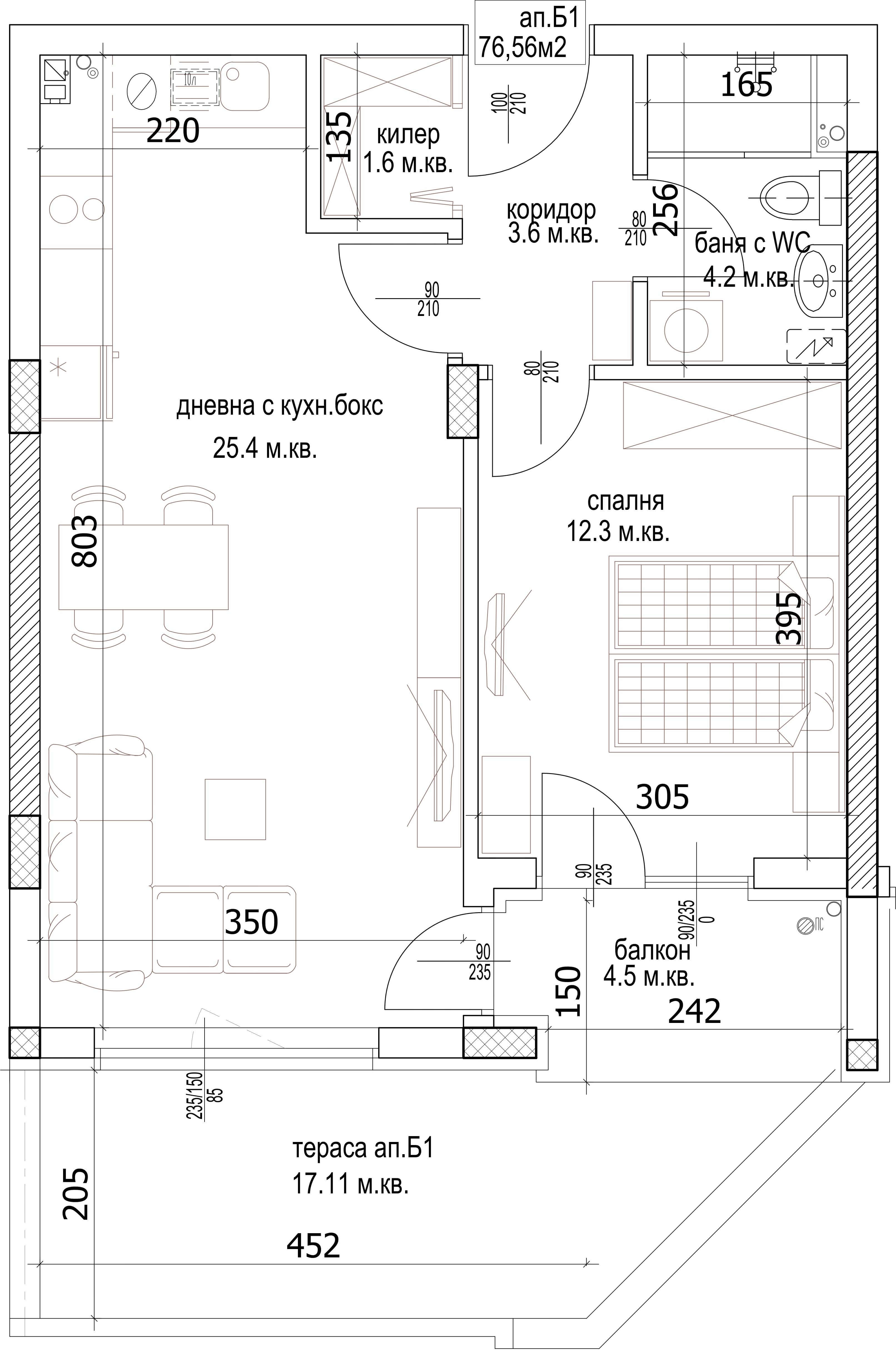 Апартамент, Двустаен Б - 1