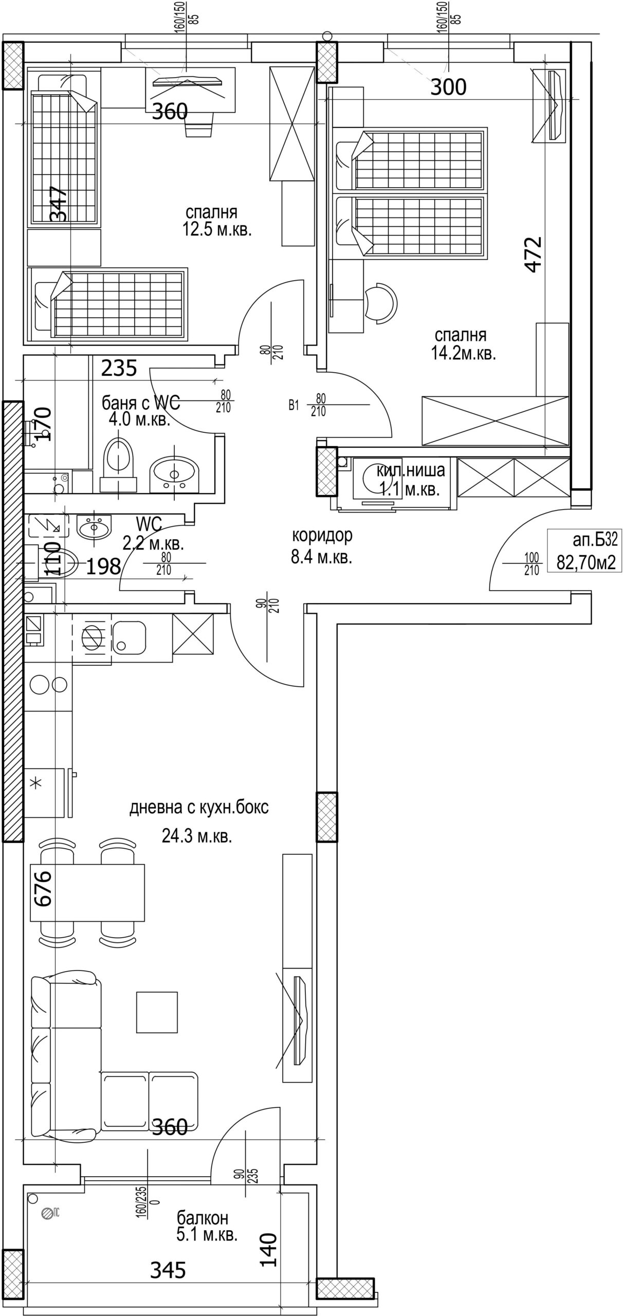 Чиста площ 82.70 м2