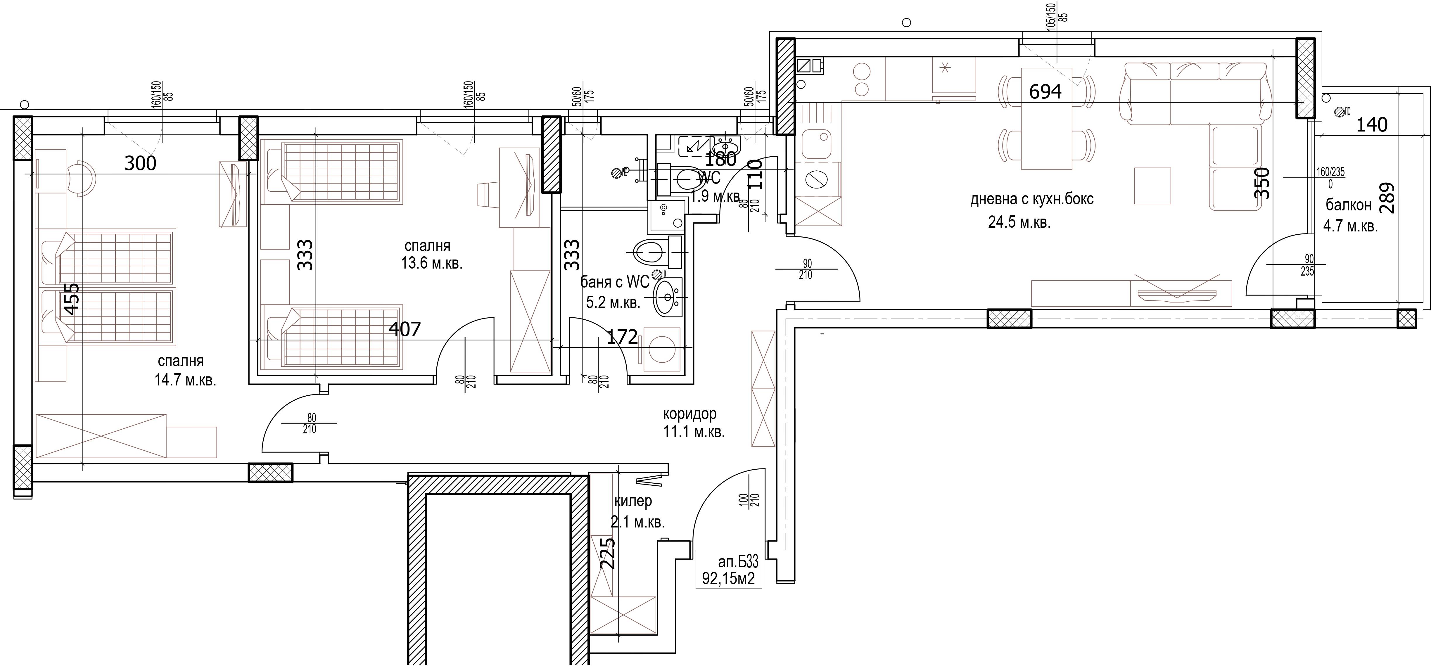 Чиста площ 92.15 м2